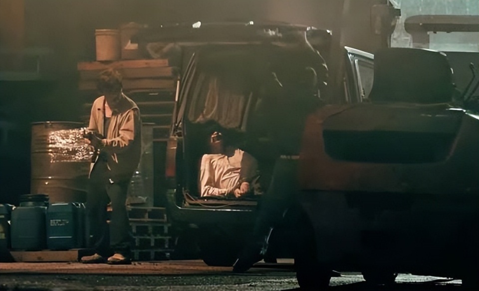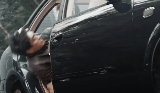 高速行驶的汽车中,扭打在一起的两个人头被按在车门外,被另一个方向撞来的车掀翻,快到只能看见模糊的残影,场面惊心动魄。