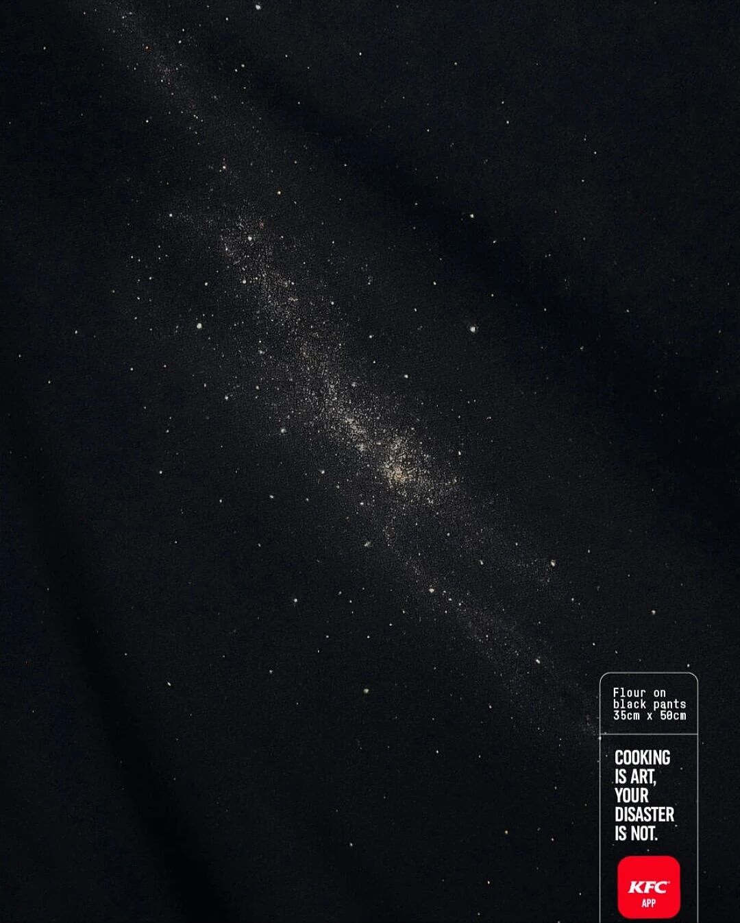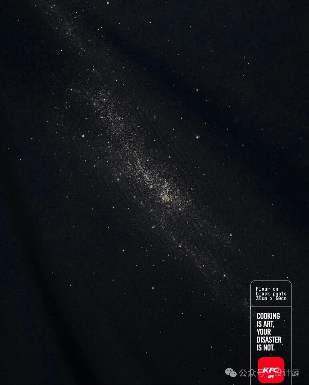 4️⃣撒在黑色裤子上的面粉,被描绘成了浩瀚宇宙中的璀璨银河。 p4