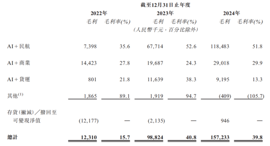 但细分来看,2024年,AI+民航、AI+货运毛利率有所下滑,分别为51.8%、13.3%,同比下降0.8个百分点、25个百分点。