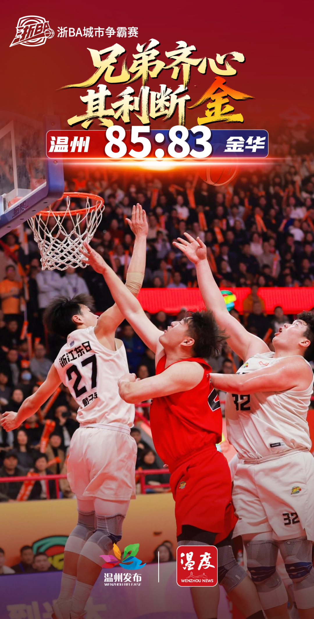 温州队以85:83的比分战胜金华队