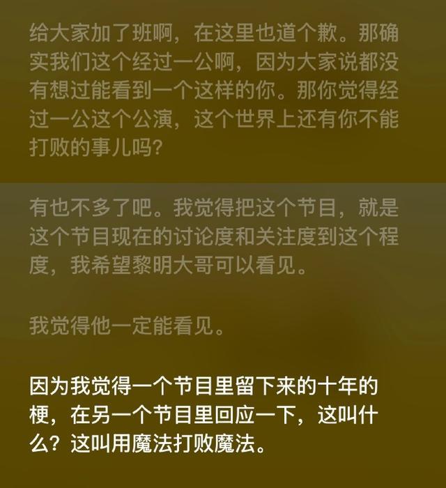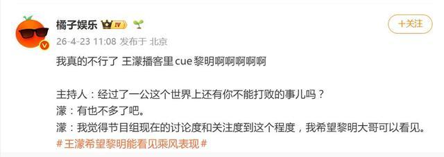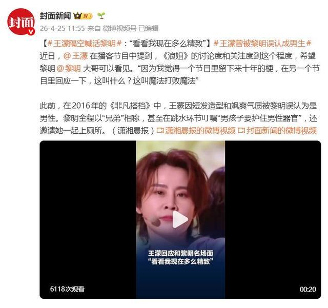 如今,十年过去了,王濛在《乘风2026》的舞台上又火了一把,这让她想起了当年的“老大哥”。在播客里,主持人问她:“经过了一公,这个世界上还有你不能打败的事儿吗?”王濛霸气回应:“有也不多了吧。”紧接着,她就顺势抛出了那个埋藏十年的梗:“我觉得节目组现在的讨论度和关注度到这个程度,我希望黎明大哥可以看见。因为我觉得一个节目里留下来十年的梗,在另一个节目里回应一下,这叫什么?这叫魔法打败魔法。”